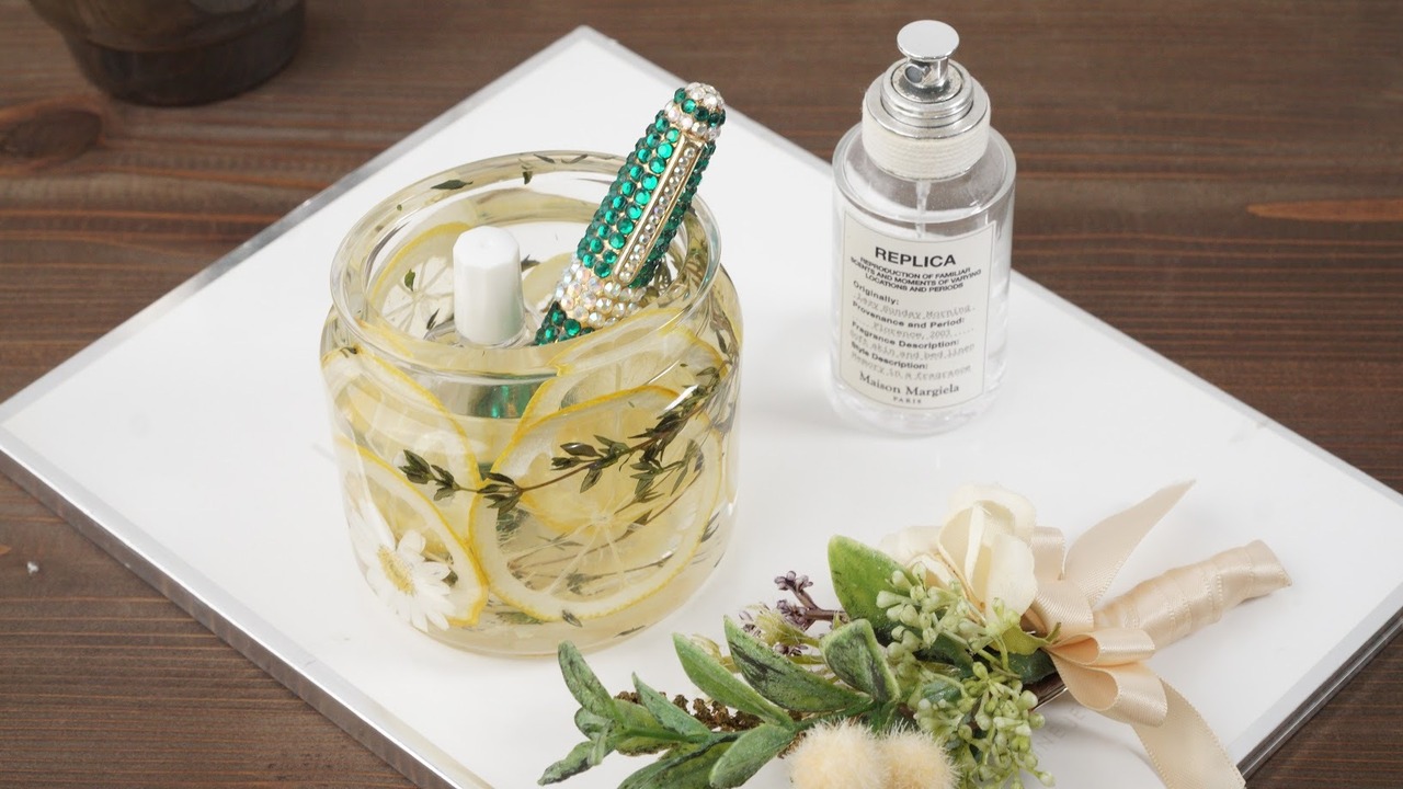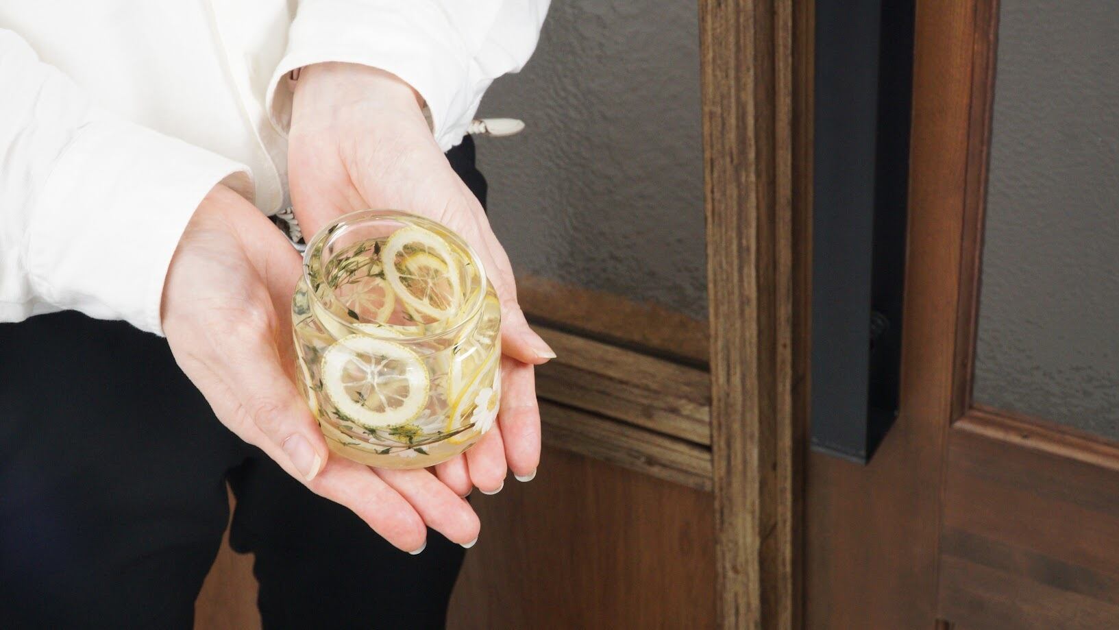 本物のレモンとお花を押し花がレンジに埋め込まれているビンです!レモンが入ってるビンなんて、見たことないですよね?クリエイターさんが一つ一つ手作りしているので、世界に一つだけのデザインです。